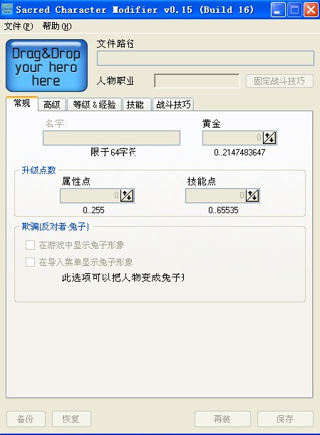 可以修改人物名称,黄金数量,属性点,技能点,生存奖励,复活次数,人物等级,人物经验,技能等级,战斗技巧等级,当然还可以开启所有游戏难度(骨灰模式除外)