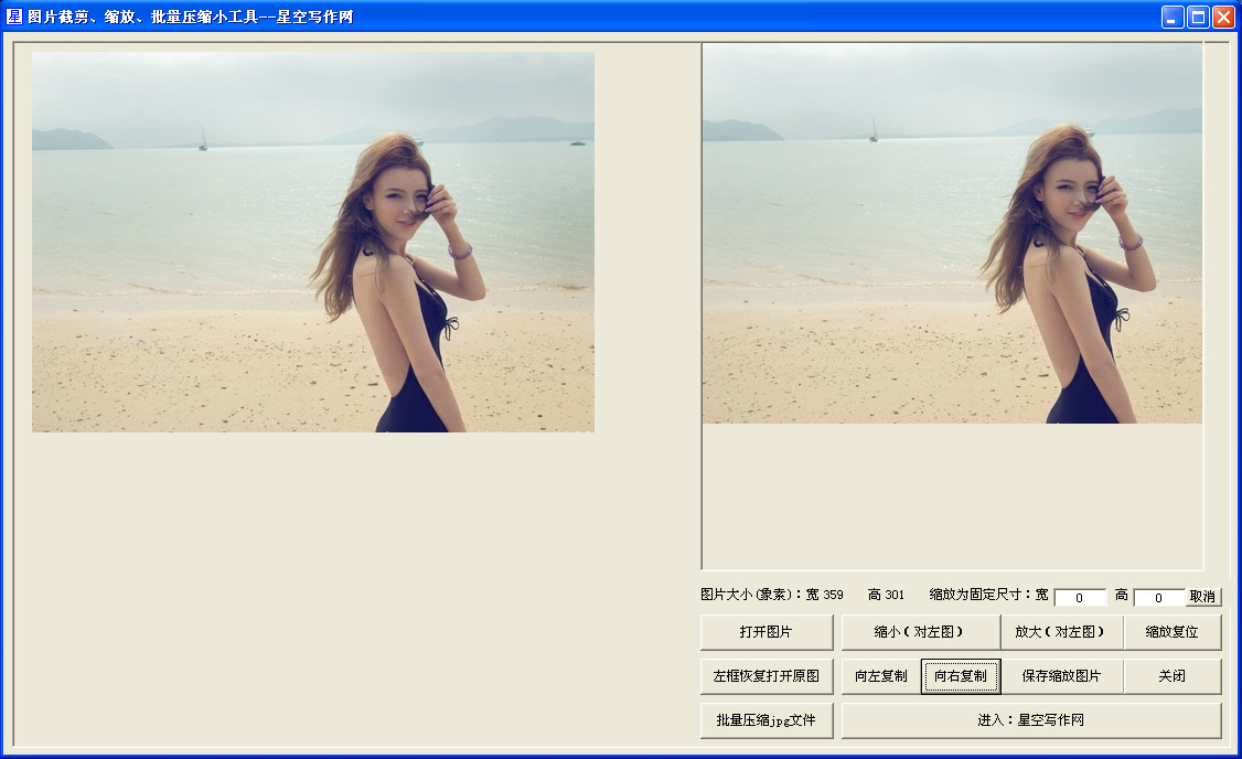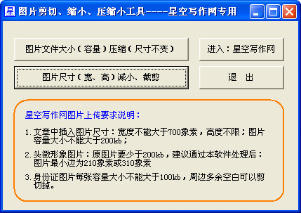星空图片处理软件为您提供图片剪切、缩小、压缩等功能,让你可以快捷方便的对图片进行处理,操作简单,绿色免费,非常方便实用。