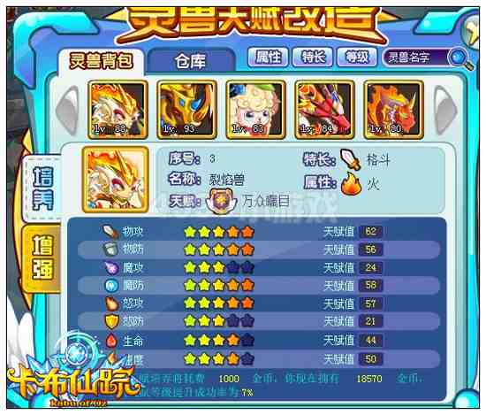 答:卡布仙踪是多灵兽战斗游戏,战斗力的强弱对于队伍的强弱起到很大的作用。
