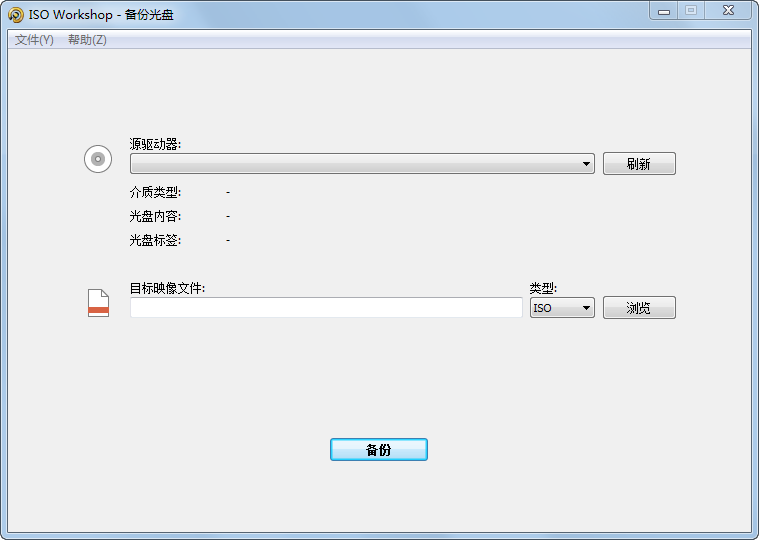 2、点击浏览,指定光盘映像文件,然后单击备份,将整个光盘复制到光盘映像文件在硬盘上。