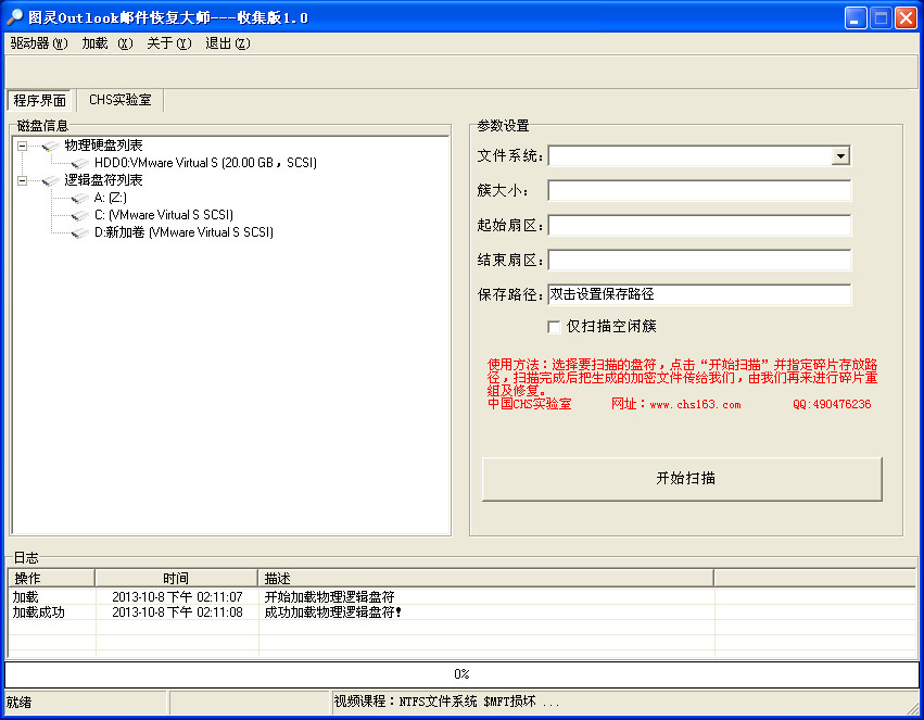 选择要扫描的盘符,点击“开始扫描”并指定碎片存放路径,扫描完成后把生成的加密文件传给我们,由我们再来进行碎片重组及修复。