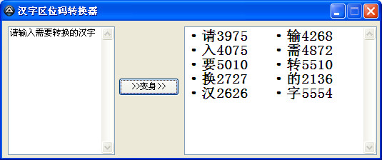 打开汉字区位码查询工具,输入要转换的内容,点击“变身”。