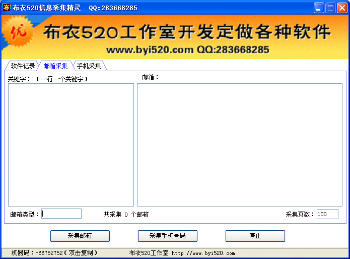 布衣信息采集精灵可以帮你快速采集各种邮箱和手机号码,按分类全自动采集,使用起来方便快捷,非常实用高效。