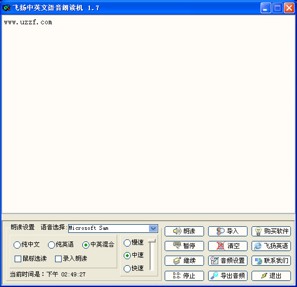其采用先进的TTS语音合成技术,发音清晰,语速适中,能流畅地朗读任何中英文混合文本。无论您正阅读的是中文武侠小说,还是英语新闻,或是同时包含中英文内容的科技资料,您都可以放心的交给她朗读。本软件还可以将所朗读的文本转换为音频文件。