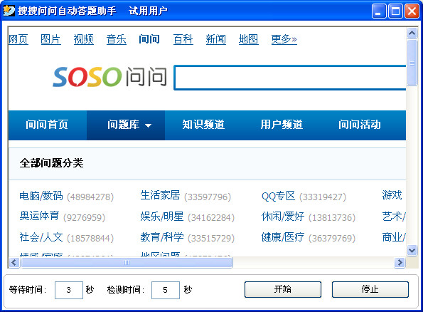 搜搜问问自动答题工具可以帮助你快捷方便的完成搜搜问问最新问题,具有自动答题等功能,为你的搜搜问问增添快捷的答题方式,使用简单,非常实用。