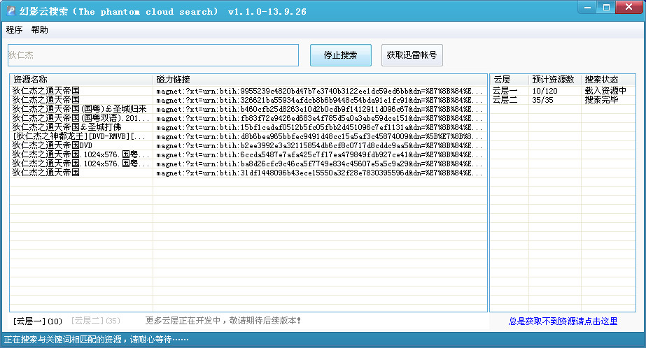 幻影云搜索器是一款云搜索软件,输入关键词即可快速搜索种子资源,点击即可下载,软件本身带有云点播功能,可以预览种子内容以免下错,非常方便快捷,资源丰富且搜索迅速。