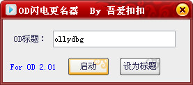 OD闪电改名器可以对ODv2.01的程序标题、进程名、信息提示标题进行一键更改,使用简单,绿色免费,非常方便快捷。不知道怎么使用的童鞋可以查看压缩包里的视频教程,保证一看就会用了。