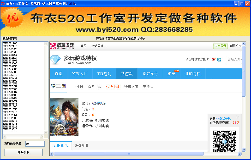 梦三国至尊公测大礼包获取器可以帮助你快速获取萌三国至尊公测大礼包,获取前需要先登录多玩账号,操作简单,使用方便快捷。