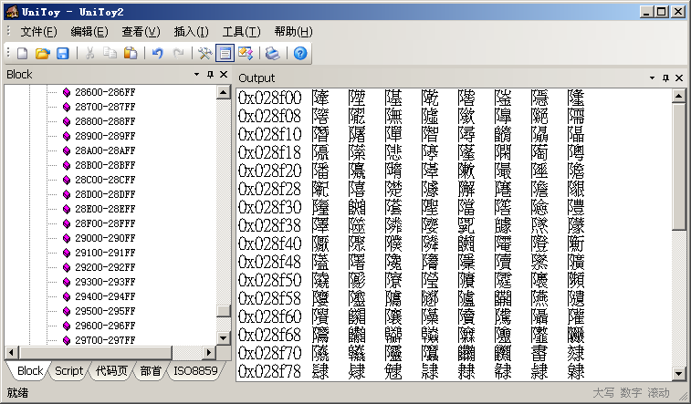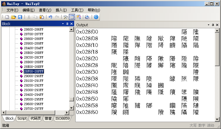 UniToy支持Unicode 5.0的全部字符,但这些字符的显示需要字体文件的支持。例如: