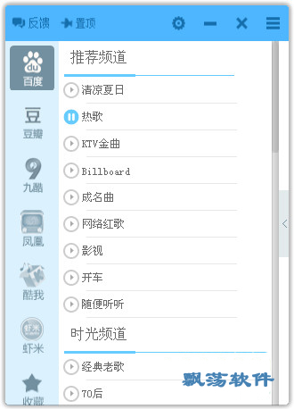 6大热门电台,包括百度豆瓣、虾米、酷我等主流电台,为用户带来更多选择。
