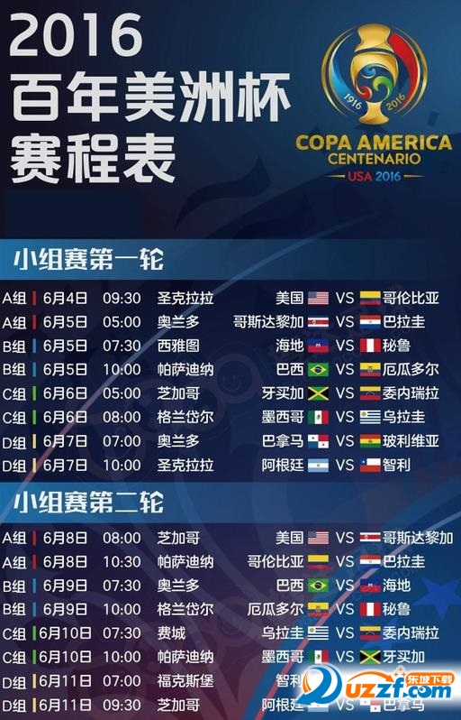 2016美洲杯赛程表有需要了解以及最新的赛程安排的朋友,现在就可以直接的来东坡这里下载最新的2016美洲杯赛程表下载,这里就可以直接的下载这你需要的2016美洲杯赛程表下载!