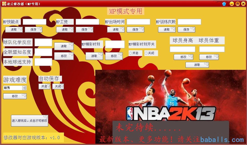 我也会在NBA2k13来临之前好好的研究2k的游戏,争取在2K13登陆时,做出更完美的修改器!!
