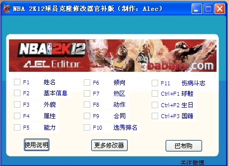 4.如果提示初始进程信息失败,请确定已经运行了游戏并且游戏进程名是nba2k12.exe;
