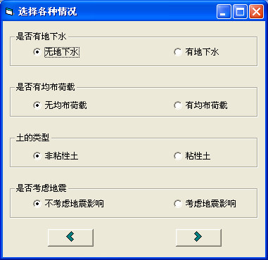 第二步,选择各种情况,是否有地下水,是否有均布荷载,土的类型,是否考虑地震