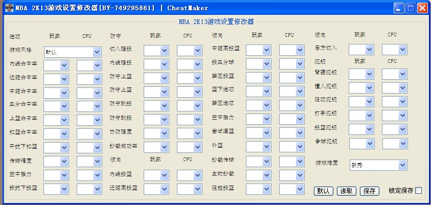 首页游戏娱乐游戏修改器 → NBA2K13游戏设置修改器 v1.2 中文版