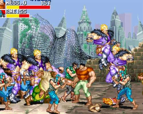 《恐龙快打多boss版》是《恐龙快打》系列作品中最为喜感的一部分。国内达人玩家为追求更高难度,更高水平的游戏体验而专门设置的一款街机游戏,在游戏中,你可以看到无数英雄好汉从天而降,似神兵天降般下凡。蜂拥而至的敌人能够瞬间让你飞灰湮灭。这么多敌人。这么拳头,你是否感到一阵阵压力感呢?当让考虑到游戏的平衡性,敌人的数量不可能无限增多。但是想要突破包围圈还的看你的本事了。