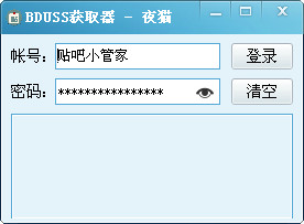 打开BDUSS获取器,然后输入账号密码进行登陆,登陆成功即可自动获取BDUSS。