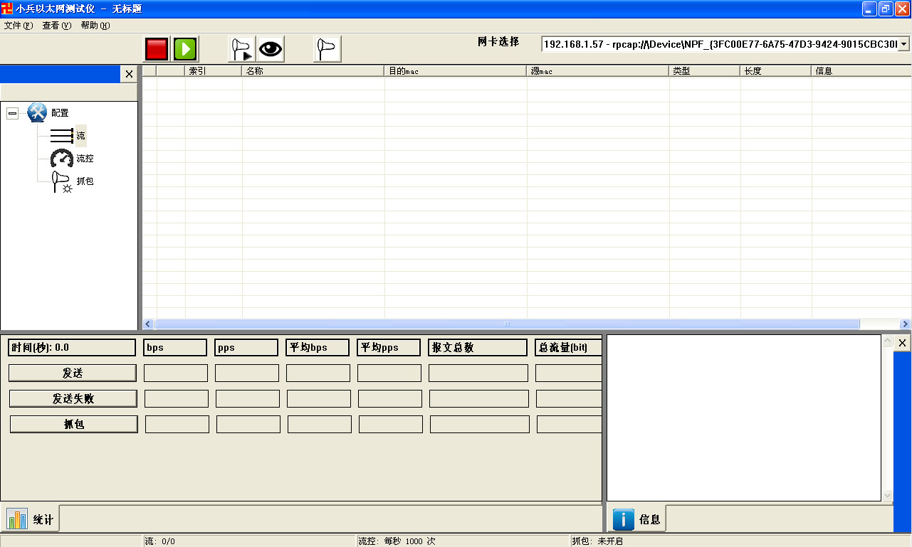 小兵以太网发包抓包工具是一款以太网测试仪软件,绿色小巧,基于pc机网卡而研发,用于构造编辑报文流、发包、抓包。