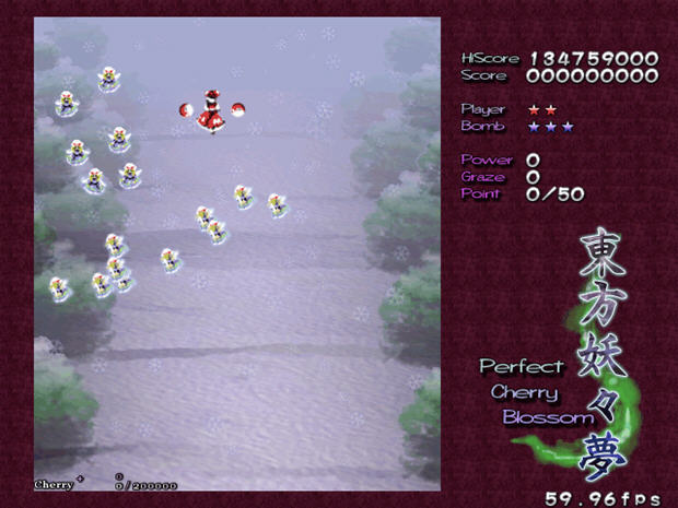 东方妖妖梦有三个可游玩角色,每个角色又有两个不同的符卡装备可选择。博丽灵梦可以轻松穿行在细小的缝隙中,相对的她的攻击力也比较低,基于选择的装备。雾雨魔理沙有高火力和速度但她的攻击范围很狭窄。十六夜咲夜的攻击比灵梦更广泛和灵活,但很难操作。