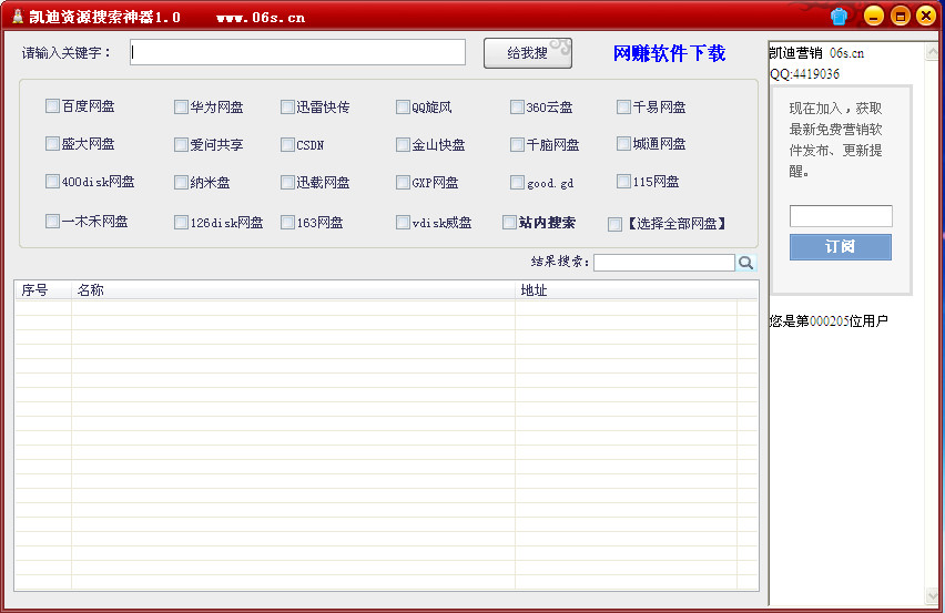 打开凯迪网盘搜索器,输入关键词,选择要搜索的网盘,点击“给我搜”。