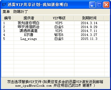把迅雷VIP共享计划工具复制到迅雷目录下运行,请先关闭迅雷再运行。