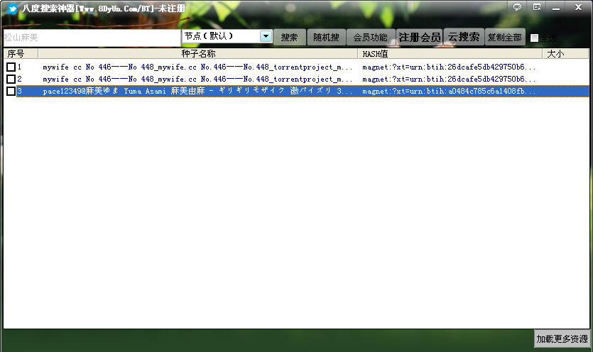 打开八度种子资源搜索器,输入关键字进行搜索,推荐大家点击“随机搜”,很邪恶,你懂得。搜索出的种子可以点击右键直接云播放,非常方便快捷。