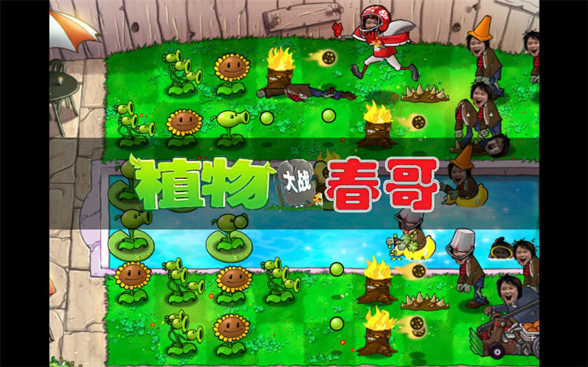 此版本为植物大战僵尸的恶搞春哥版,可怕的僵尸即将入侵,唯一的防御方式就是栽种的植物。可武装的49种植物,切换不同的功能,诸如樱桃炸弹或强悍的大嘴花,更加快速有效的将僵尸阻挡在入侵的道路上。不同的敌人,不同的玩法构成五种不同的游戏模式。此游戏集成了即时战略、塔防御战和卡片收集等要素、游戏的内容就是,玩家控制植物,抵御僵尸的进攻,保护这片植物园。