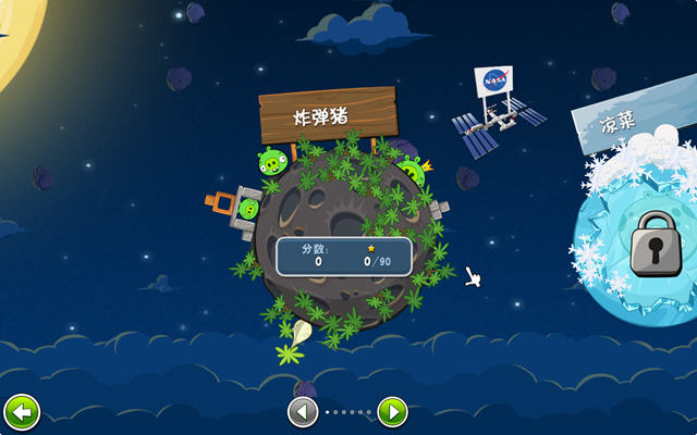 在新版的游戏中,物理特性将会有所不同——射出的小鸟在没有重力影响的时候,轨迹是完全直线的;而一旦有小行星等重力吸引,小鸟的轨迹就会相应发生变化,想要在《Angry Birds Space》中过关斩将的话,就必须要掌握好这一简单的原则。