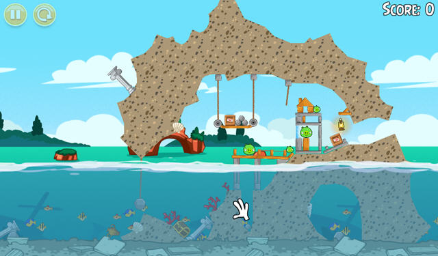 继太空版之后,愤怒的小鸟再一次推出全新的版本,猪之夏日海洋,将战场重新在海底引燃,面这些可恶的偷蛋猪(鱼?),你需要应对好全新的外力因素。小鸟们的战争全线转移,大家可以尝试在水中射击的新玩法。开发商加入了新的物理引擎,水中的小鸟将会借助浮力改变飞行轨迹,然后绕过障碍消灭那些绿猪。新版增加了30个全新的水域关卡,在抢夺鸟蛋的时候,还可以探索水下遗址。