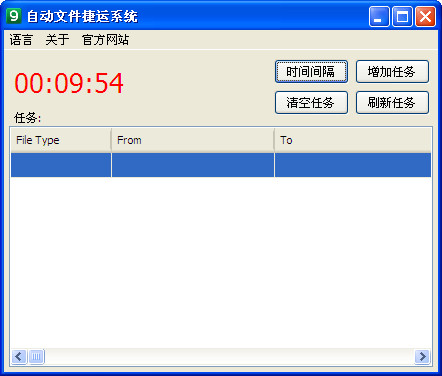 打开文件自动转移工具,首先点击language-简体中文,修改成中文,然后增加任务,选择时间间隔。