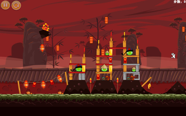 愤怒的小鸟:2012龙年版以春节为主题,让玩家感受到新年的新气氛,绿色的猪头们现在也换上了像地主一样地主帽,另外加入的炮仗也成了游戏中另一个需要玩家探索的因素。这次是和我国即将到来的龙年有关,宣传上就是叫做“Year Of Dragon”(龙年)。作为一款趣味十足的的小游戏,《愤怒的小鸟》可谓红遍全球,其Rovio制造商也总是不断地把新鲜的元素加入到游戏里,而很快,这款游戏就将加入中国元素。为大家带来今年最新特别的版本。