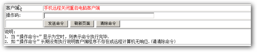 手机远程关闭重启电脑可以通过电脑浏览器或手机远程操作客户端电脑重启、关机、睡眠、关闭显示器、打开显示器、绿色设计免注册,免安装,没有广告插件,程序原理就是获取命令-执行命令-清除命令。