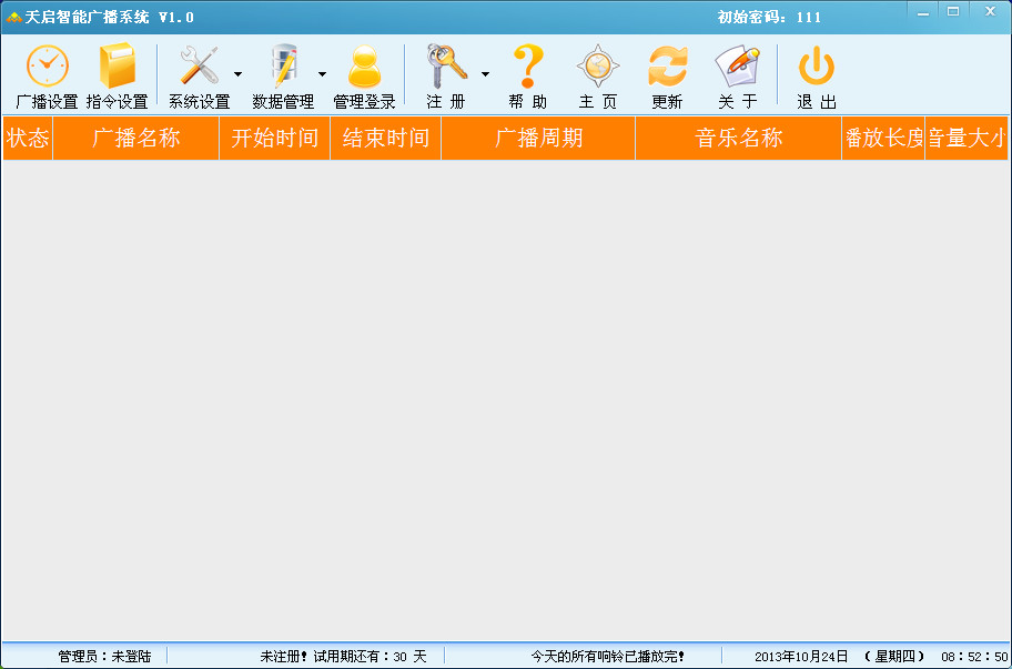 天启智能广播系统是一款智能指令广播软件,可以自由选择播放铃声,支持多种音乐格式,非常适合用来做上下课铃声播放,操作简单,方便快捷。