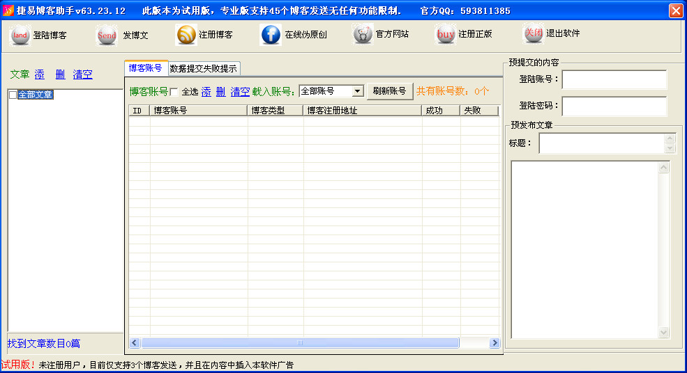 1、采用一键登录发送文章,方便快捷.试用版仅支持3个博客发送.无需付费即可测试