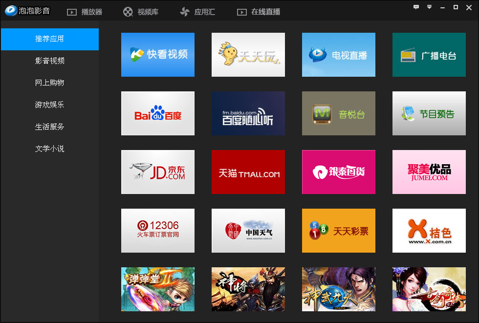 泡泡影音网络电视软件为您提供最新高清影片观看,海量最新电影电视视频库,高速在线电视直播,功能强大,完全免费,让您免费享受高清电影点播。