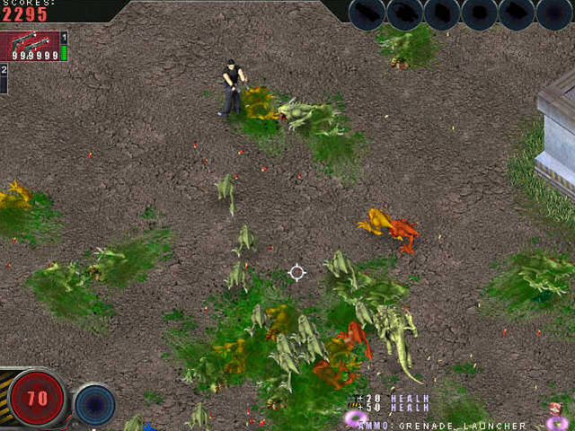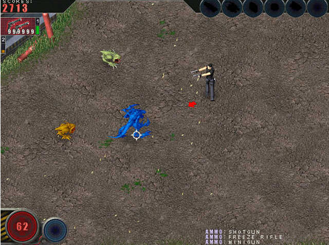 经过了长时间的等待,Sigma-team终于推出了孤胆枪手的2代游戏。当体验过游戏的精彩之后,你一定会认为这长久的等待还是值得的。游戏的画面继承了孤胆枪手一代的恐怖和血腥的风格,并且在画面质量上有大幅度的提高。游戏的场景显得更加广阔和大气。角色更加清晰和细腻。射击和爆炸效果也更加火爆,完全超越了一代的水准。动态的音乐和声效随着游戏的进行不断变化,会让你崩紧神经并且不会感到单调和枯燥。各种环境背景音效几乎可以乱真。在感观上给予玩家真实的刺激。游戏的操纵十分简单,鼠标左键射击,右键定位移动点,中键调出配置菜单,如果喜欢键盘控制方向的玩家可以使用方向键来控制主角移动。游戏的情节丰富,包含各种事件和隐藏的内容都需要玩家进行探索和分析。在游戏中你可以选择6个不同的角色,每个角色都有不同的属性。超过50种不同的武器具有不同的功能,你可以通过射击、燃烧、冻结等方法消灭敌人。20种以上的军事道具,从手电、雷达到各种急救装备一应俱全。游戏拥有普通、生存、和网络3种游戏模式。屏幕上会出现超过100只怪物同时向你发动攻击,而每张地图上也有超过10000只怪物来等待你消灭,不同的天气状况和游戏中的NPC角色也让游戏内容更加丰富。