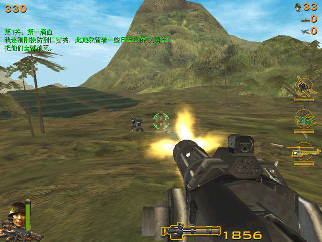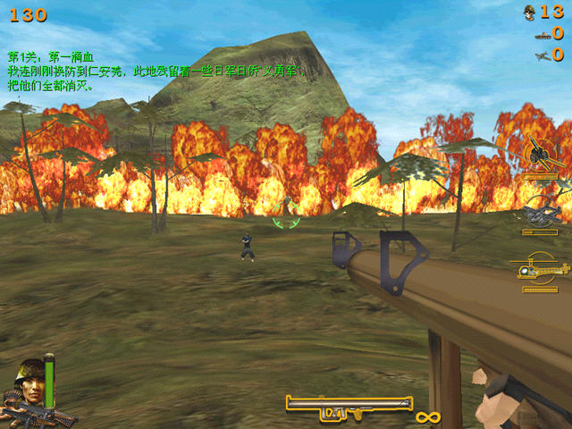 《抗日:血战缅甸》的历史背景正处于1944年的大反攻中,抗日的烽火已经从大上海十里洋场燃到缅甸茂密的丛林。主角作为盟军的先遣队员,在敌前侦察时误入日寇的大部队的势力圈,而此时我军主力尚在数十公里以外!敌人正如潮水般涌来,总部给你的命令是死守阵地,直至大部队感到。没有人能够救你,除非发生真正的奇迹。所幸的是,总部及时空投了当时最精良的武器,包括M1911式自动手枪、性能卓越的Thompson冲锋枪、点面俱到的迫击炮,甚至包括坦克杀手——巴祖卡,用这个可以轻松的解决日军乌龟壳式的坦克与装甲车。