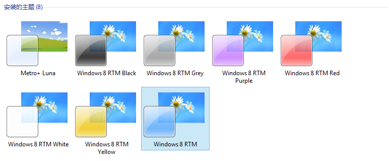 我们主要是用到 Windows 8 Themes 这个主题文件夹,它里面包含 RTM、RTM Earth、RTM Flower 三款主题,然后每款主题里面又有不同的版本,爱折腾的朋友尽量看清楚里面的Readme文档的描述进行使用,不想折腾的同学就用 Windows 8 Main Theme 那款吧。将 Windows 8 Main Theme 文件夹里面的全部文件(一个文件夹和多个.theme文件) 复制到 "C:\Windows\Resources\Themes" 里面去,再安装好 Windows8 Fonts 文件夹里面的字体即可。