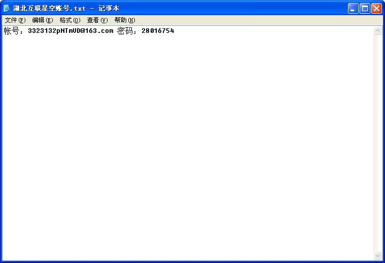 2、点击保存帐号按钮会在软件目录下生成“湖北互联星空帐号”文本,记录了帐号和密码