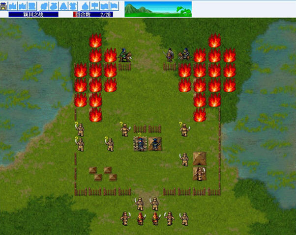 《三国志——曹操传》,又将舞台从日本的战国时代搬回到中国的三国时代。同英杰传系列以往的作品一样,《曹操传》前半部分将忠于历史,几乎都可以从《三国演义》中找到相关的情节。比如镇黄巾、讨董卓、伐吕布、剿袁绍、战官渡、鏖兵赤壁、争夺汉中等情节,都在《曹操传》中可以看到。而后半部则可根据你在游戏中所选择的选项,改变曹操的历史。游戏中有两种不同的结局。一是按历史发展,等到刘备兵败后乘虚而进军蜀吴,最终统一全国,可是这样就得不到名镇三国的关羽了。另一个结局就是孔明受魔王控制,反刘备,变成了典型的勇者斗恶龙的结局,联东吴战曹操,最后当然是曹操战胜,统一全国。在这个结局中,你可以得到蜀国猛将——关羽。其实仔细区分的话,在正统结局中还能再区分出“统一——称帝”和“统一——不称帝”两种。