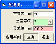 打开直线度平面度公差查询软件,输入主参数、公差等级,点击“查询”即可。
