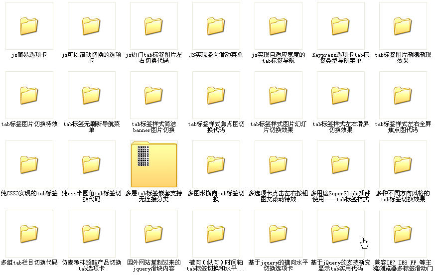 共有78款jQuery特效之TAB选项卡,每一个为一个文件夹。