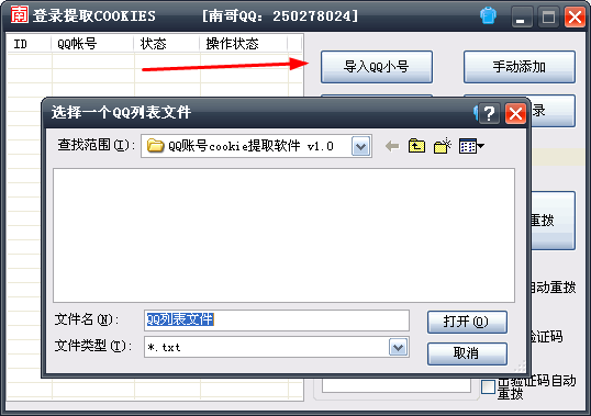 2、也可以选择手动添加QQ账号,格式为账号----密码