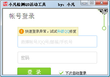 2、快速登录QQ“因为本工具需要一个QQ登录微博来进行检测”