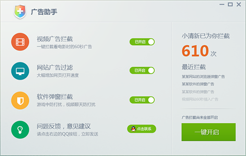 电影中,游戏中时突然的弹窗您可以不用担心了,广告助手轻松一键帮您解决这些问题。