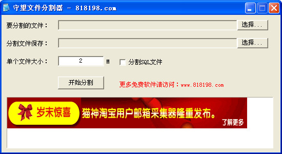 守望文件分割器可以分割任何类型及大小的文件,绿色小巧,操作简单,分割迅速,完全免费使用,非常方便和分割后的文件一起打包。