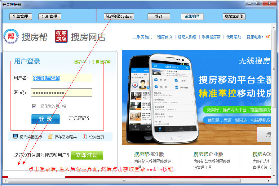 请注意:登录后一定要转到后台列表页面方可点击获取cookies,如果软件重启后不能刷新也要重新登录.