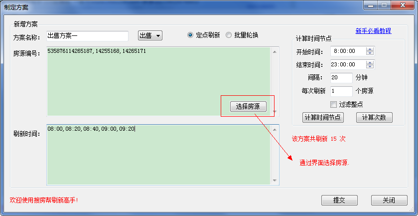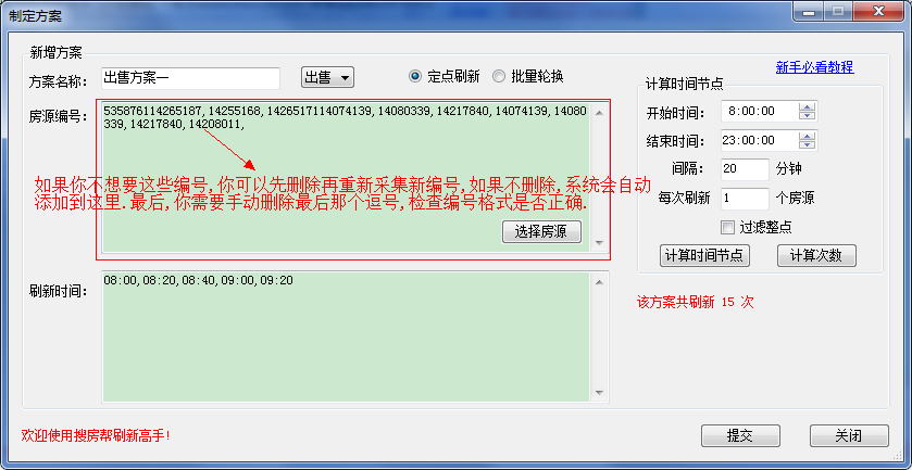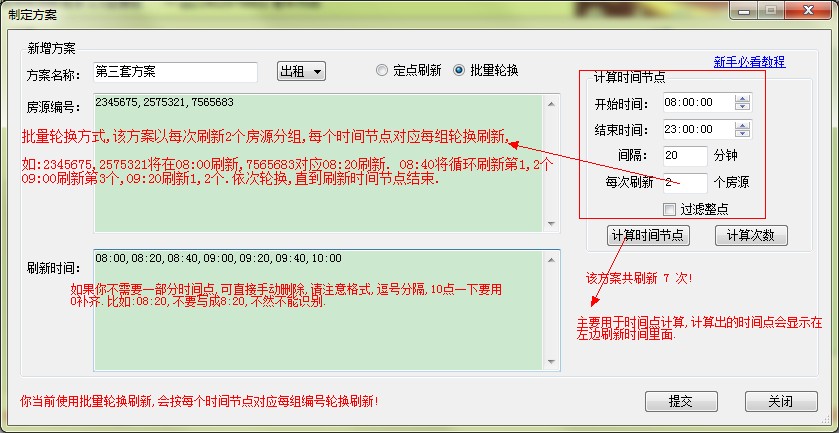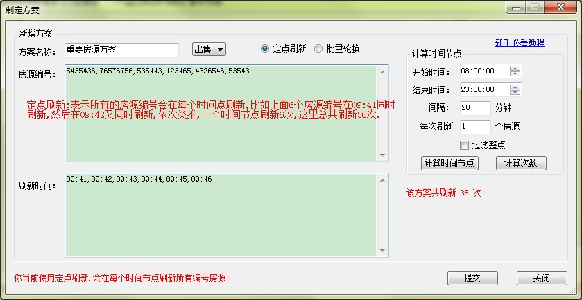定点刷新:用于满足主推的少量房源方案.建议设置较少房源编号,然后指定刷新时间.