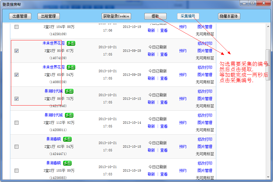 第三步:点击提取.然后点击采集编号.如果要重复选择第二页的.继续重复这个操作就可以了.