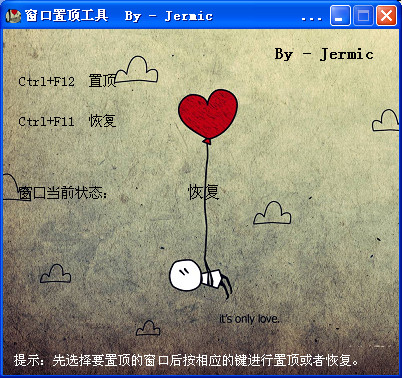 Jermic窗口置顶工具是一款绿色简便的窗口置顶小工具,帮助你快速置顶窗口,非常方便快捷。